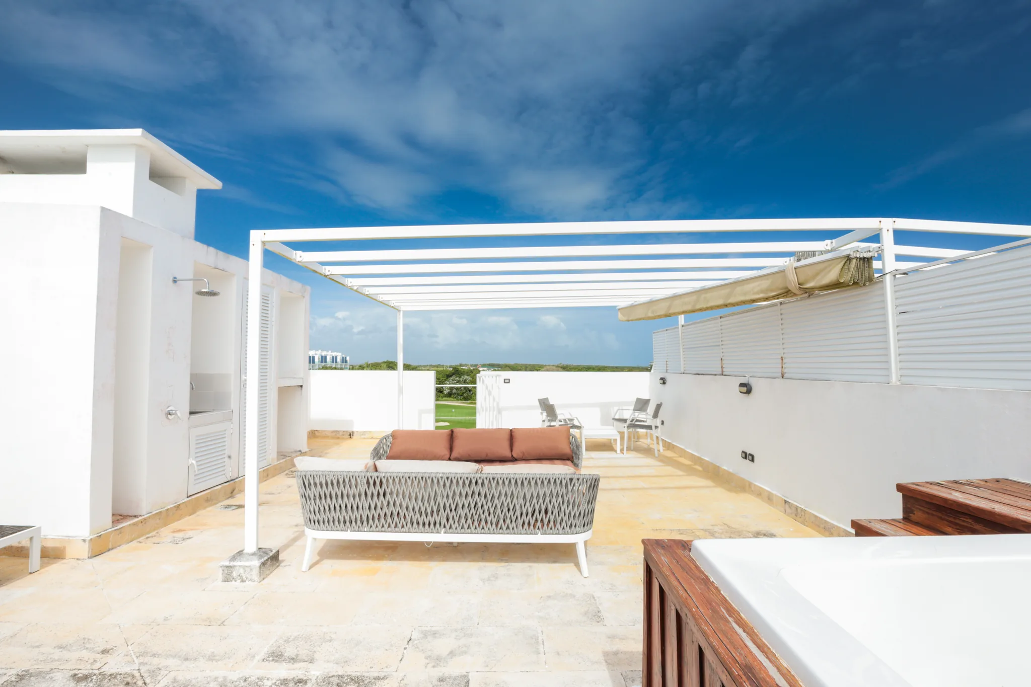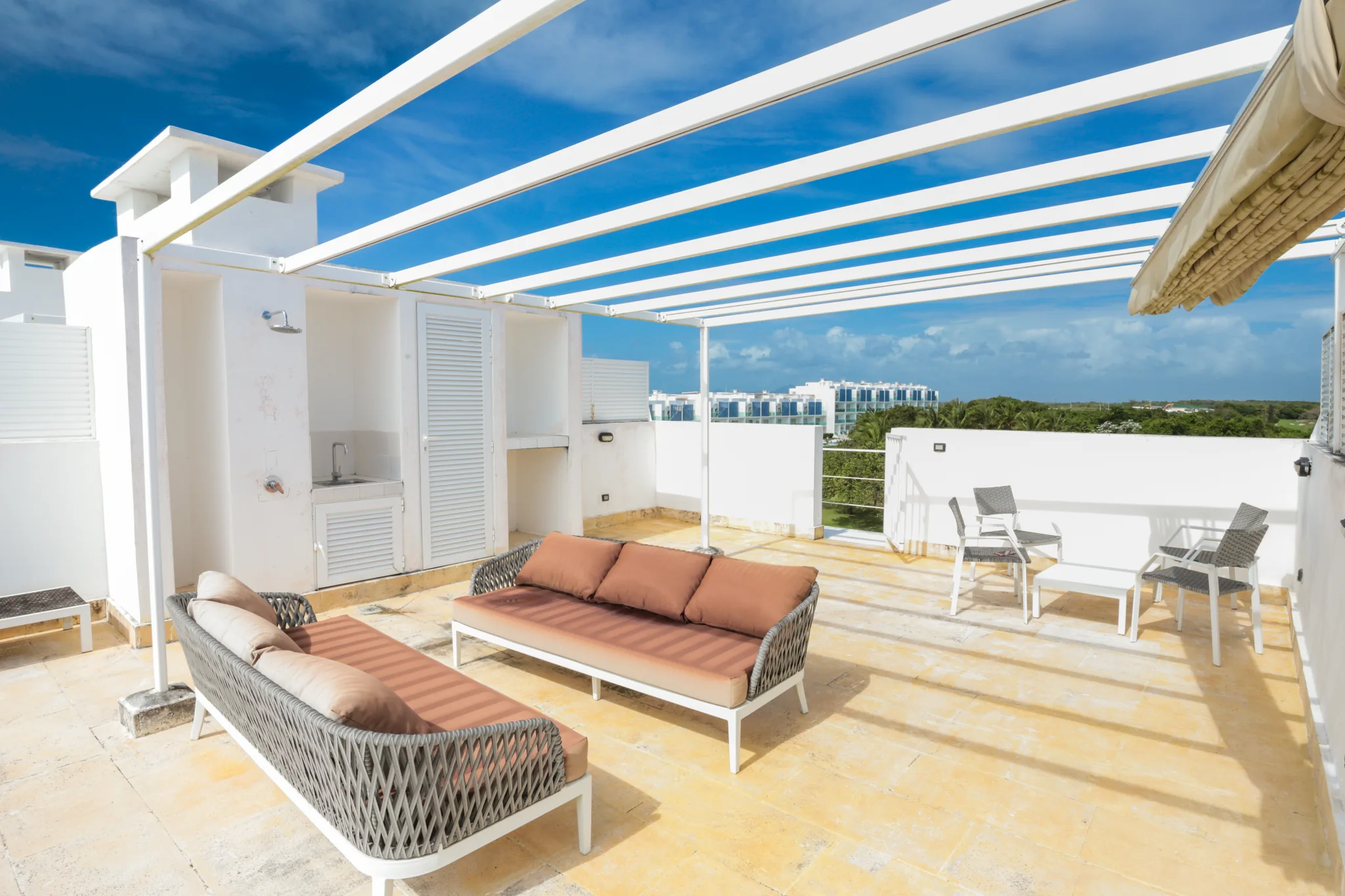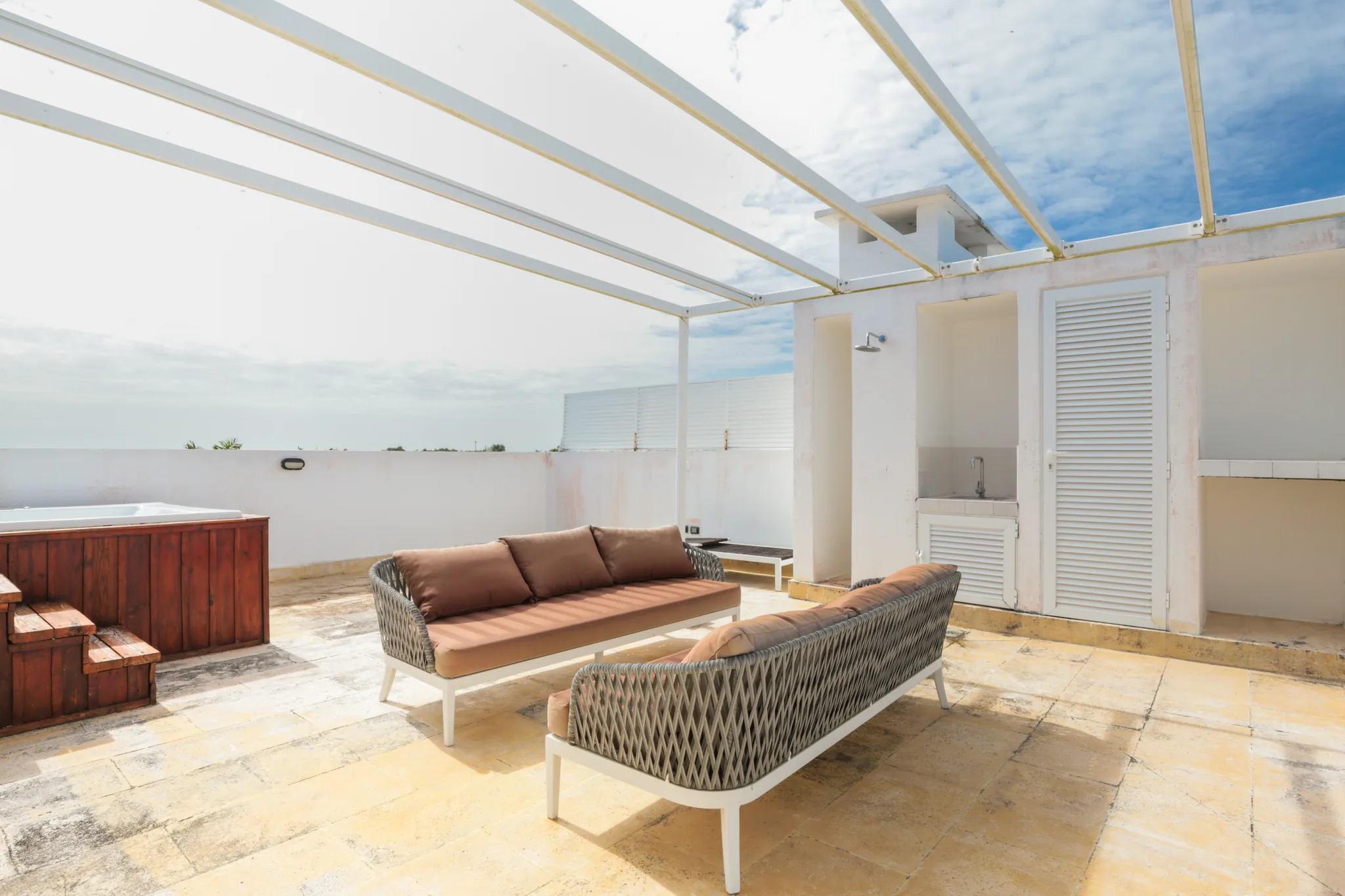 On the second level, you will find a large private terrace designed for relaxation and entertainment: